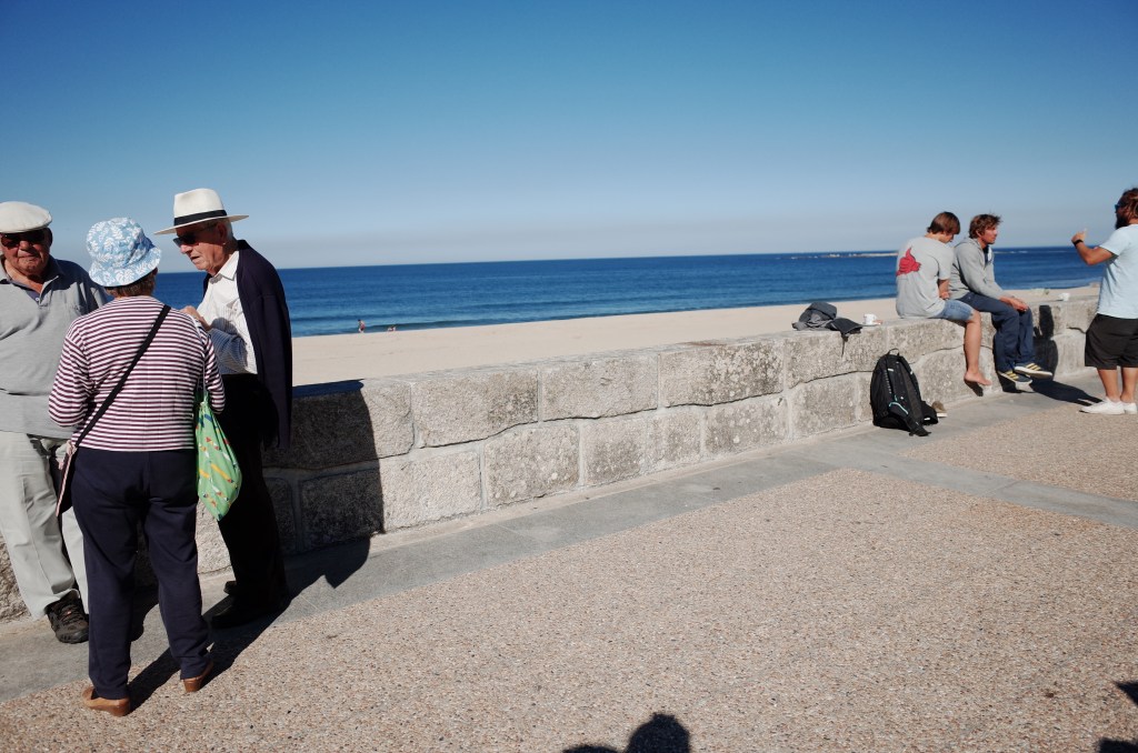 Плотные пляжи и песчаная дымка португальского океана, огромные валуны и холодная пена Галисии, каталонское захолустье, где сети сгнили без рыбаков лет двадцать назад, дорогие набережные курортной Астурии, пасхальное кантабрийское запустение — везде цепляешься глазом за внезапный угол с пластиковыми стульями, кофейные чашки, экран на стене (футбол или новости) и покачивающиеся голые мачты, мимо которых потом бредут покачивающиеся барные пенсионеры (и мы, и мы).
